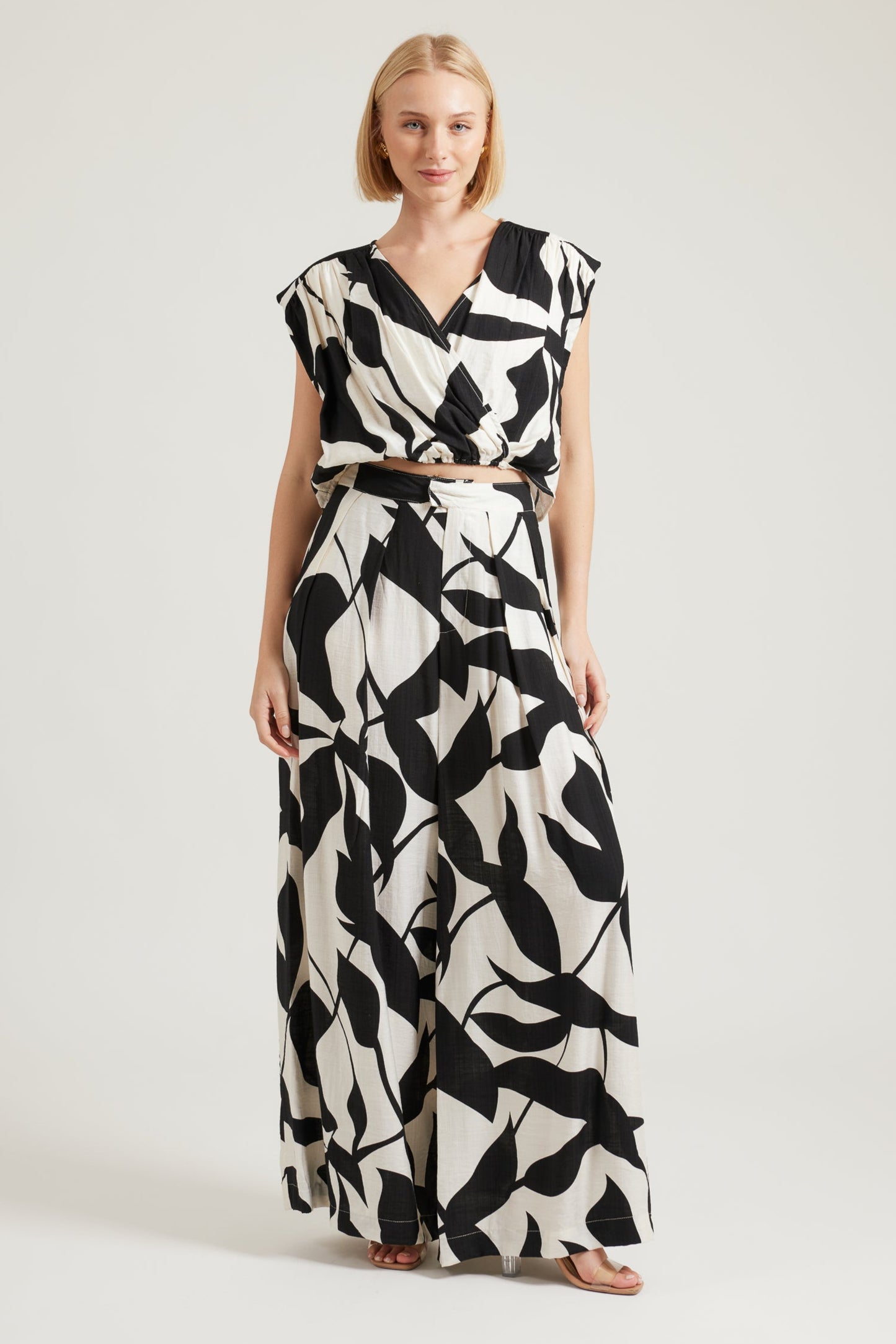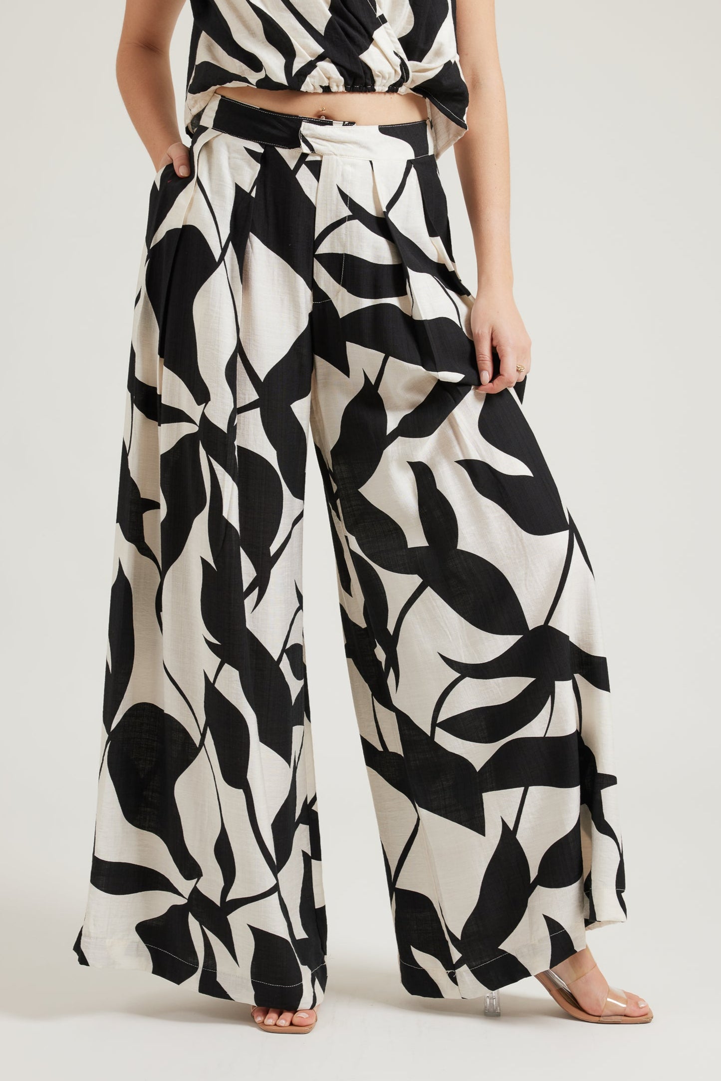 TW4570A Kalmia Leaf Print Wide Leg Culotte Pant