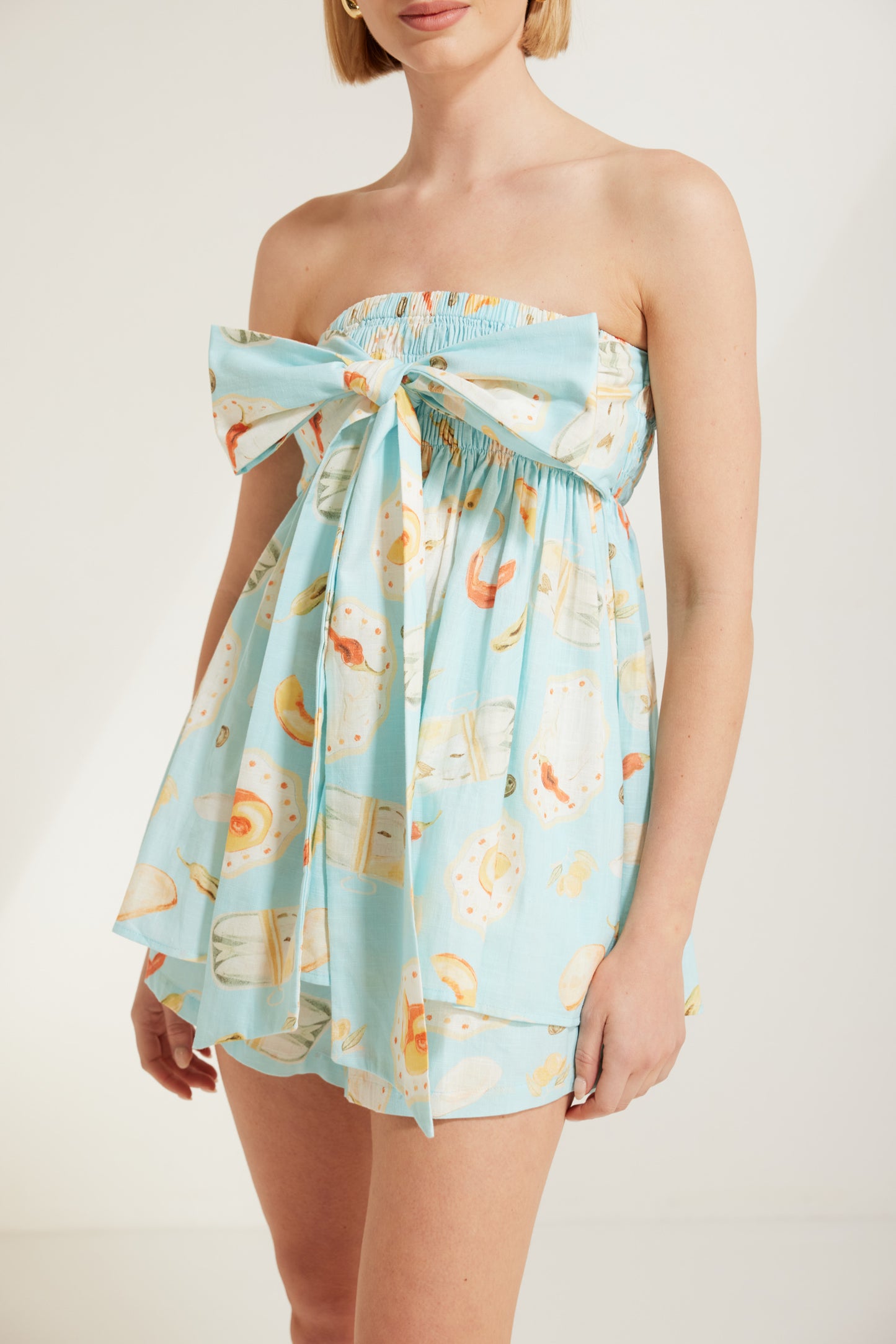 - Strapless neckline