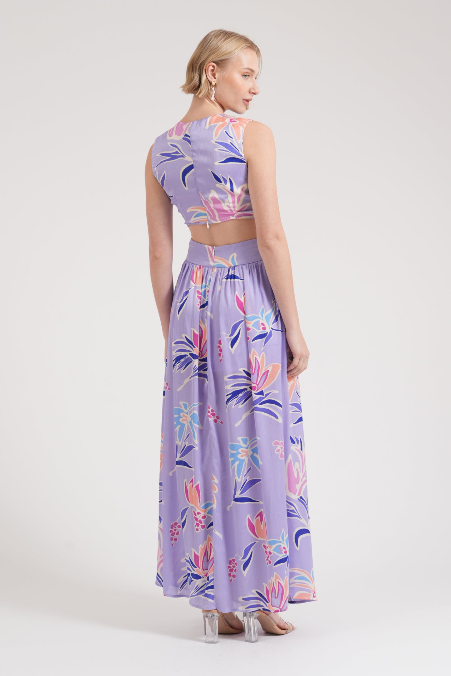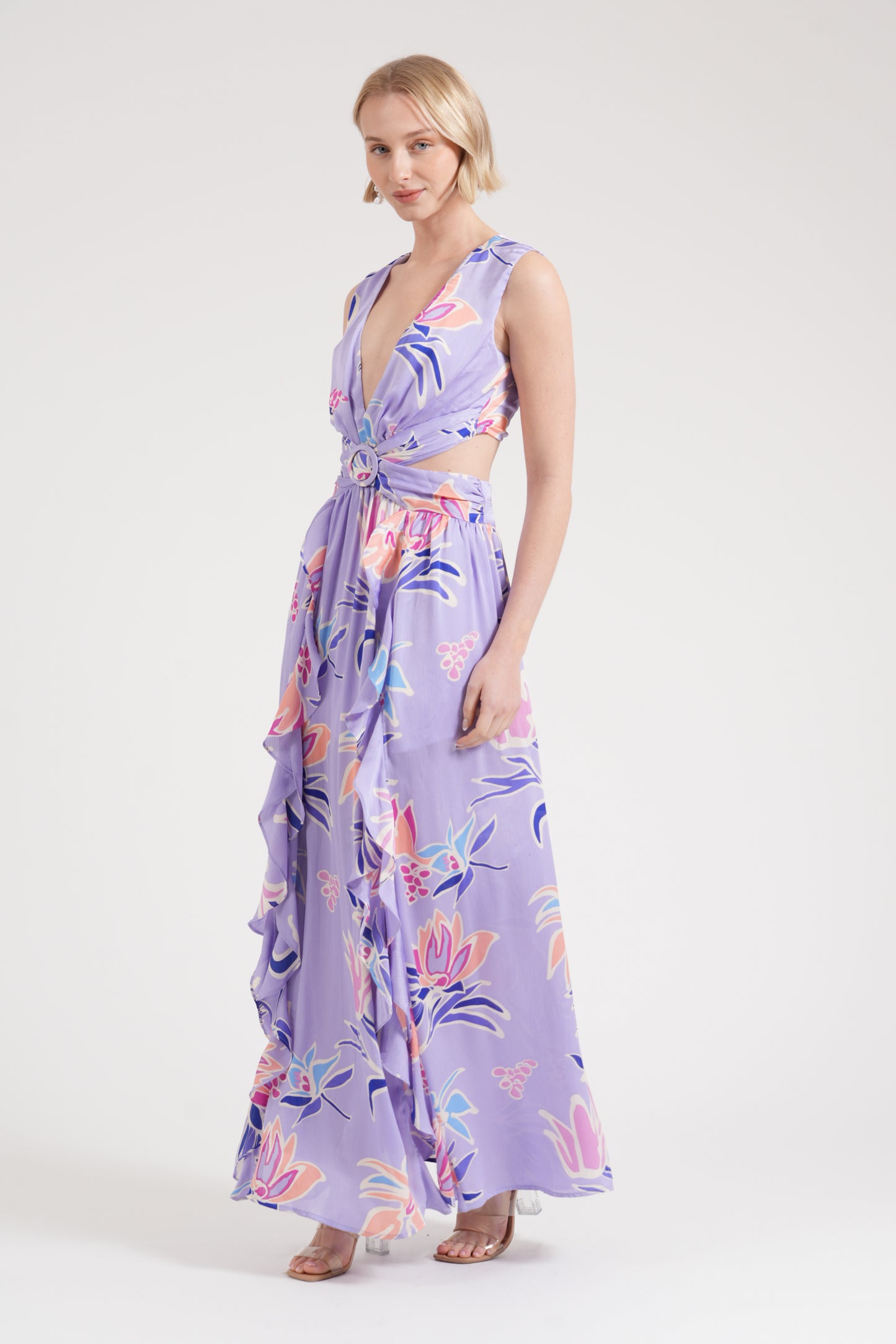 TT9021A Sapphire Cut Out Ring Maxi Dress in Floral Print