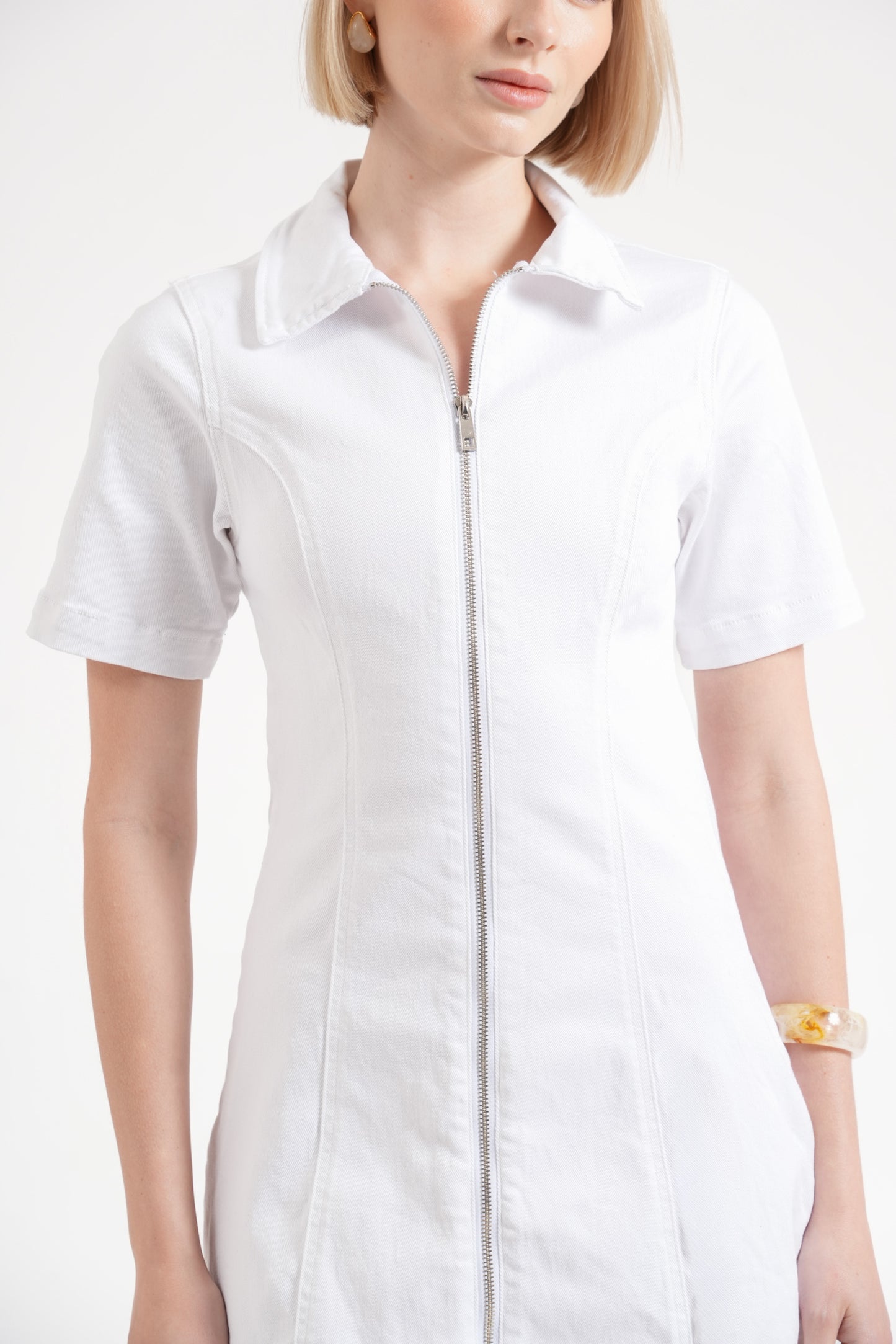 T3582 Cherie Denim Mini Dress White